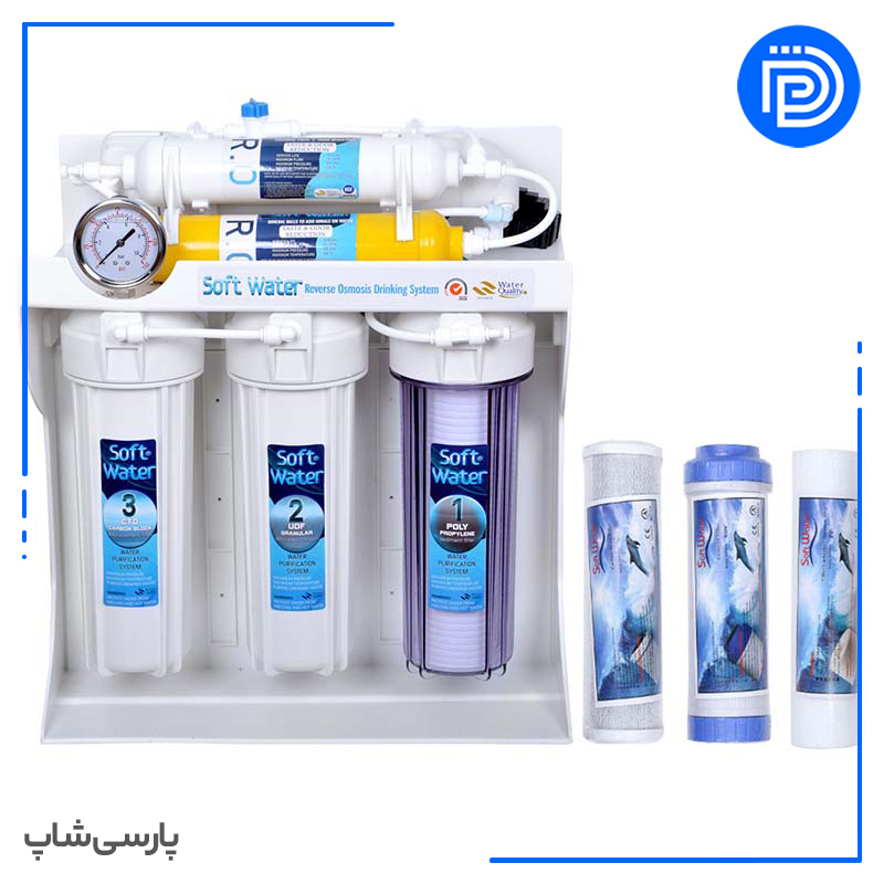 دستگاه تصفیه کننده آب 6 مرحله سافت واتر مدل hajibashi-X600N به همراه فیلتر تصفیه کننده آب کد 3s مجموعه 3 عددی