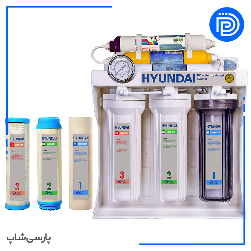 دستگاه تصفیه آب خانگی 7 مرحله هیوندای مدل HU-PVC-07 به همراه فیلتر تصفیه آب مجموعه 3 عددی