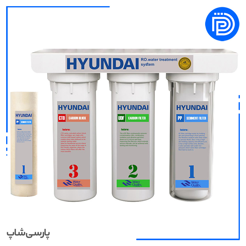 دستگاه پیش تصفیه آب 3 مرحله ای مکانیکی هیوندای مدل HU-3s به همراه فیلتر تصفیه آب مدل HU-PP10