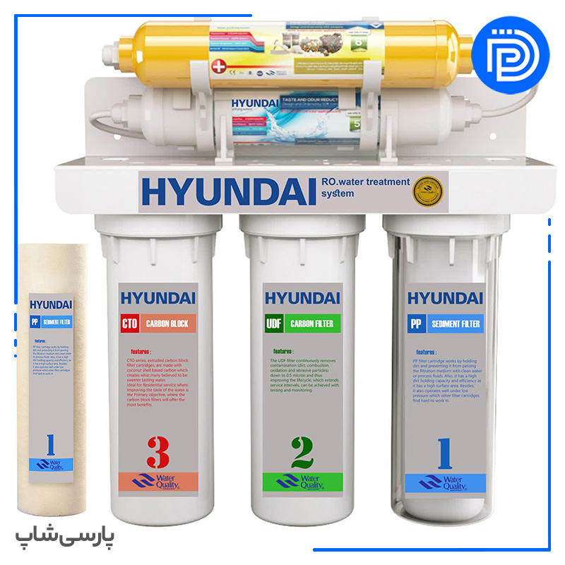 دستگاه تصفیه آب خانگی 5 مرحله مکانیکی هیوندای مدل HU-5s به همراه فیلتر تصفیه آب مدل hu-pp